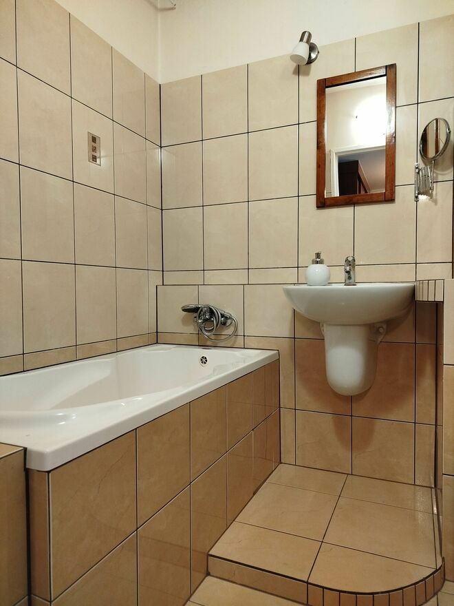 - Łazienka z wanną i pralką,