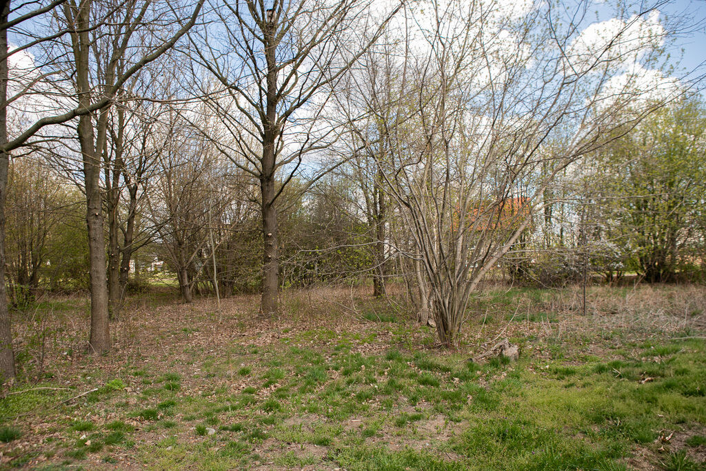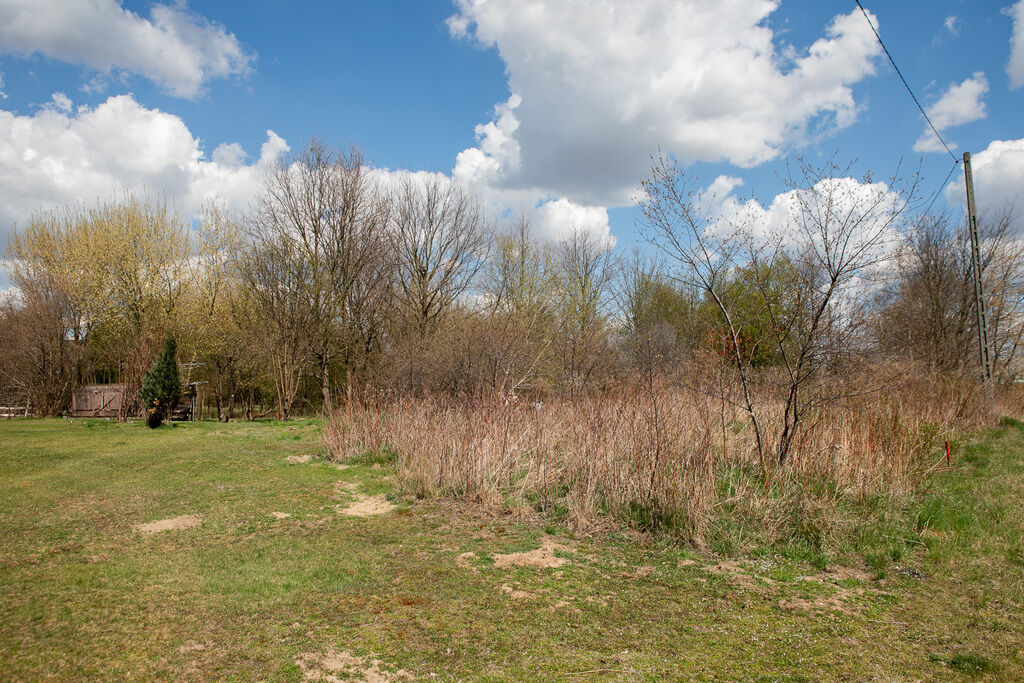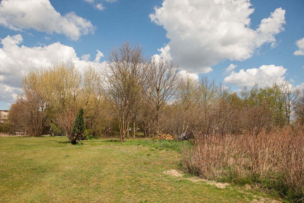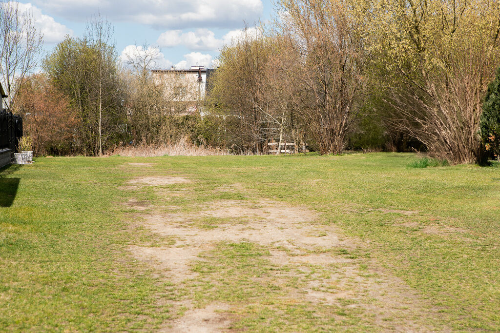 Działka o regularnym kształcie zbliżonym do trapezu, w pełni