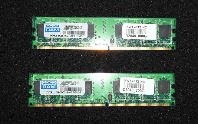 Witam! Do sprzedania pamięć RAM Goodram DDR2 o pojemności 4GB. Model PC2-6400 DIMM GR 800D264 L6/2G. Pamięć w 100% ...