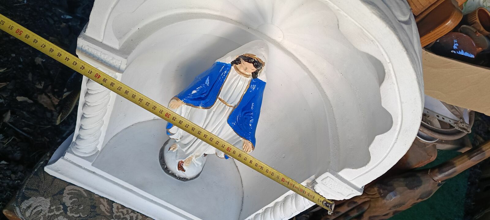 Kapliczka ogrodowa wraz z postacią Matki Boskiej wykonana z