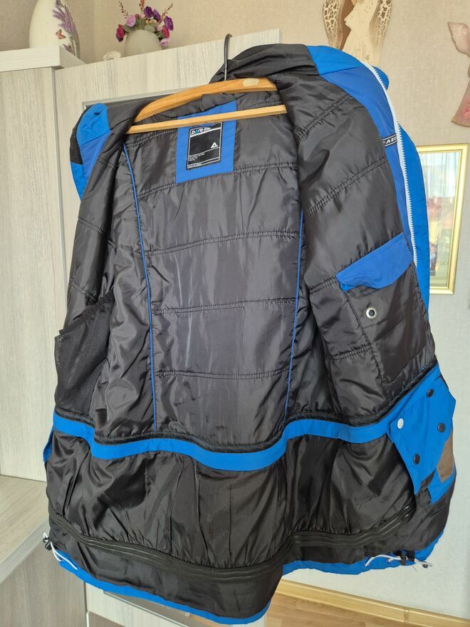 Do sprzedania męska kurtka zimowa firmy Dare2B rozm. L długość całkowita od ramienia 80cm, szerokość: 60cm, długość rękawa od ramienia 71cm. Kurtka lekka i ciepła, mało noszona, posiada ślady użytkowania, widoczne na zdjęciach, większość czasu przewisiała w szafie. Kaptur nie odpinany, posiada pod pachami zamki z siatką, kieszenie cale, nie potargane.Patryk