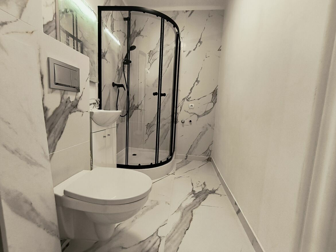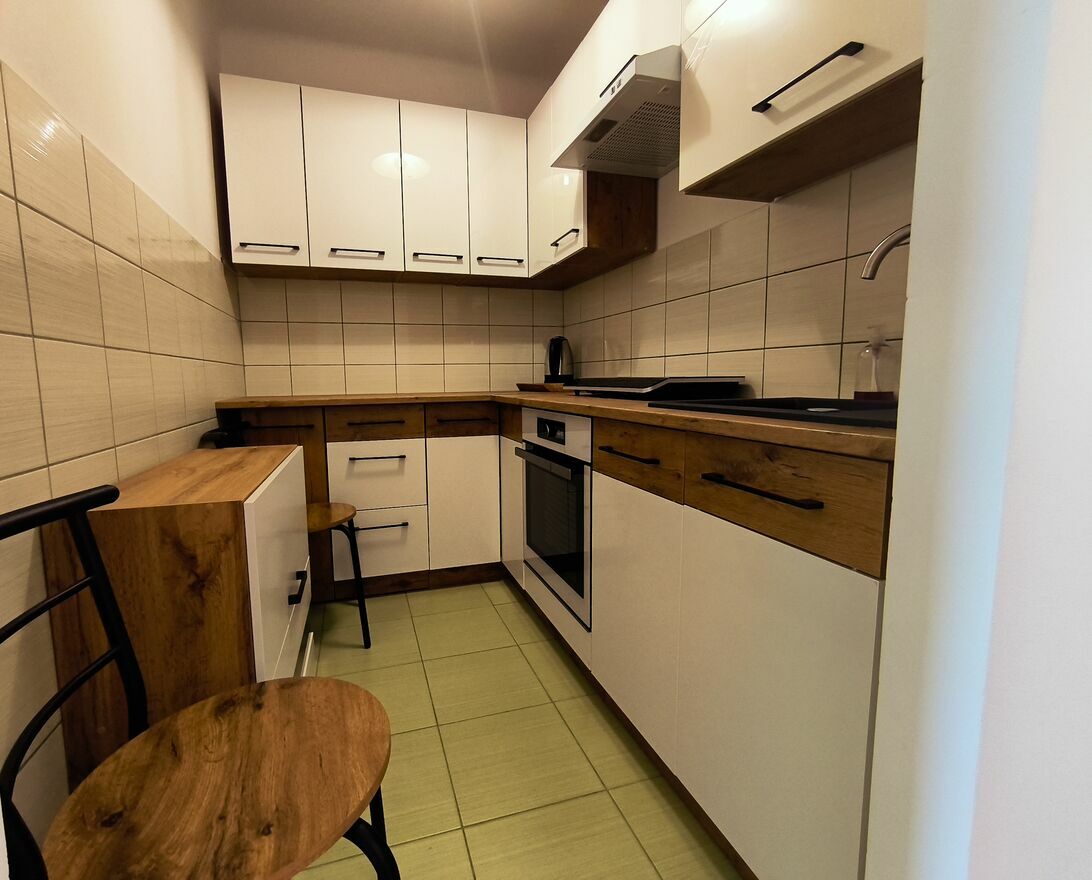 Nieruchomość przeszła gruntowny remont, w ramach którego wymieniono wszystkie instalacje – zarówno elektryczną, jak i wodno-kanalizacyjną. Odnowiona łazienka utrzymana jest w eleganckiej, stonowanej stylistyce z wykorzystaniem marmuro- podobnych płytek. Kuchnia została wyposażona w nowoczesną zabudowę z drewnianym blatem i miejscem na sprzęt AGD, co zapewnia wygodę nawet bardziej wymagającym użytkownikom. Na podłogach w pokojach i przedpokoju położono panele w ciepłym, naturalnym odcieniu, które nadają wnętrzu spójny, przytulny charakter. Dzięki ekspozycji okien na wschód i zachód mieszkanie jest naturalnie doświetlone przez cały dzień. Budynek położony jest w drugiej linii zabudowy, co gwarantuje ciszę i prywatność, a jednocześnie pozwala korzystać z pełnej infrastruktury miejskiej.