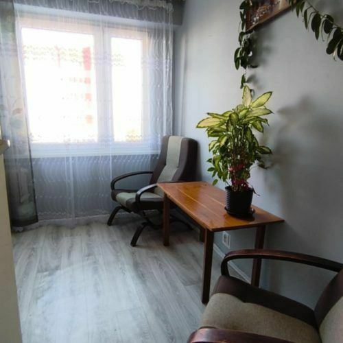Mieszkanie w pełni umeblowane. Duży pokój spełnia funkcję salonu oraz jadalni z wyjściem na balkon typu loggia. Dwa pozostałe mniejsze mogą służyć jako sypialnie lub pokoje dla dzieci, pokój gościnny, czy gabinet – zależnie od potrzeb. Kuchnia widna w kwadracie, posiada meble w zabudowie, kuchenkę gazową, lodówkę, stolik. Łazienka wyposażona w pralkę, umywalkę, wannę – osobna toaleta. W przedpokoju szafa lustro, wieszaki. Nieruchomość zabezpieczona jest drzwiami antywłamaniowymi. Okna zostały wymienione na plastikowe. Mieszkanie jest dwu rozkładowe wschód – zachód. Mieszkanie cechuje się funkcjonalnym rozkładem pomieszczeń, jest widne. Jest bardzo ustawne, daje duże możliwości do aranżacji.