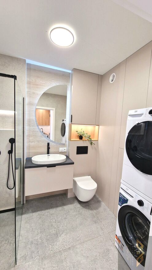 *Nowoczesne rozwiązania techniczne ogrzewanie podłogowe, klimatyzacja, energooszczędne oświetlenie LED, nowoczesne materiały wykończeniowe. Dzięki temu mieszkanie jest nie tylko stylowe, ale i ekonomiczne w utrzymaniu.