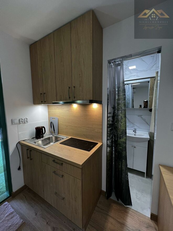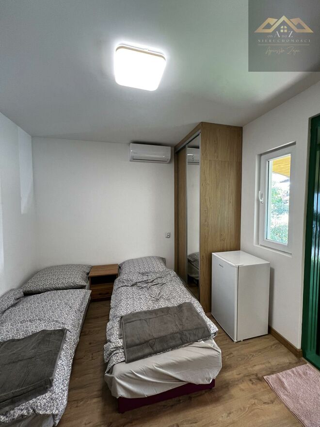 Mieszkanie o powierzchni 25 m składa się z: pokoju z dwoma łóżkami, biurkiem, klimatyzacją i szafą, aneksu kuchennego z płytą indukcyjną i lodówką, prywatnej łazienki z prysznicem i toaletą, osobnego, niezależnego wejścia.