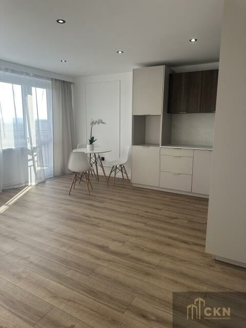 *salon z aneksem kuchennym i wyjściem na balkon,