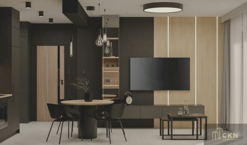 *przestronny salon z aneksem kuchennym