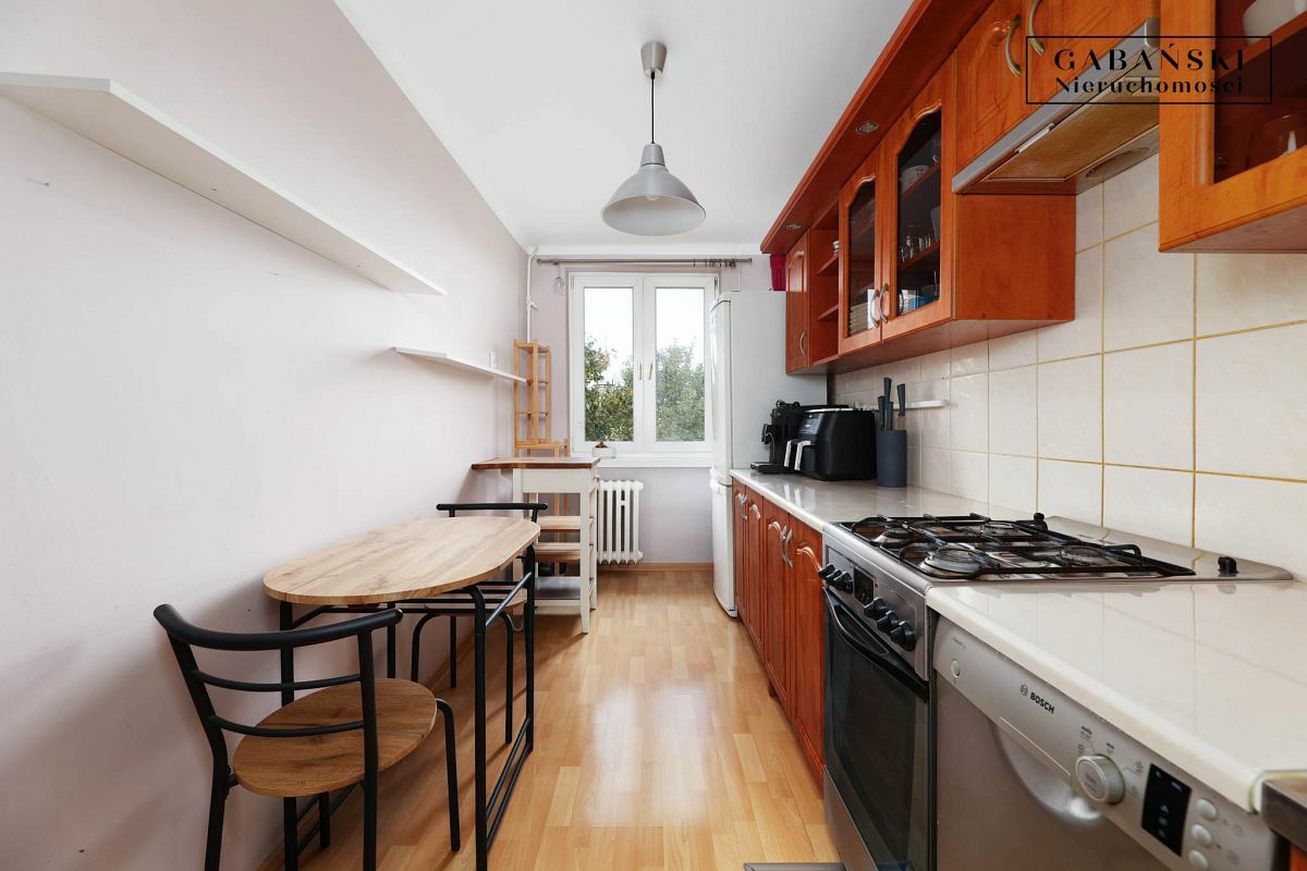 Drugi pokój (ok. 10 m2) obecnie pełni funkcję pokoju dziecięcego, jednak z powodzeniem może służyć jako sypialnia lub gabinet do pracy zdalnej. Przestronna kuchnia z oknem wychodzącym na stronę północną jest w pełni wyposażona i doskonale nadaje się do codziennego gotowania.