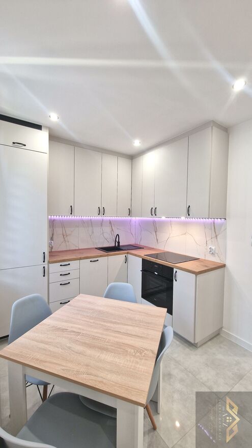 Salon z aneksem kuchennym i częścią jadalnianą jasna, otwarta przestrzeń sprzyjająca codziennemu życiu i spotkaniom z bliskimi, 2 osobne sypialnie idealne jako pokoje dziecięce, sypialnia główna lub gabinet, nowoczesna łazienka z prysznicem, garderoba dodatkowe miejsce do przechowywania. przestronny przedpokój.