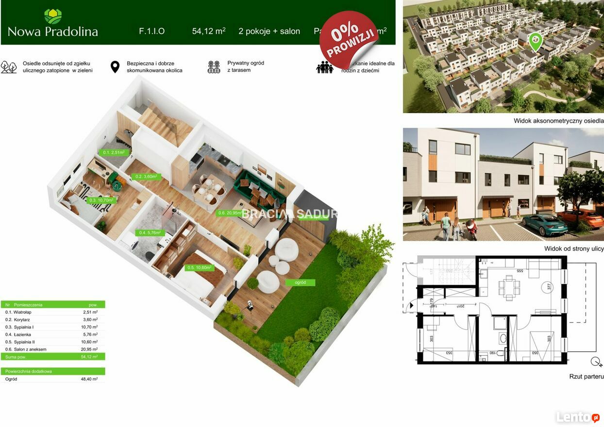 Na sprzedaż nowe, 3-pokojowe mieszkanie o powierzchni 54,12 m², położone na parterze w inwestycji „Nowa Pradolina” w Tarnowie. Do mieszkania przynależy duży ogródek 48,4 m² - idealny do relaksu i rekreacji.