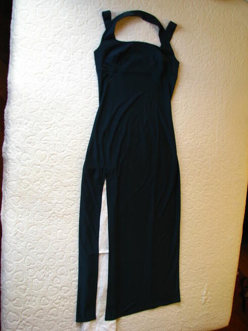 Witam, Sprzedam niepowtarzalną, długą, wieczorową suknię z dużym rozcięciem z boku w kolorze ciemnej, stłumionej ...