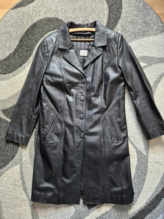 Do sprzedania damski czarny płaszcz skórzany z podpinką odsuwaną firmy Ket style, rozm z metki LStan idealny, nie przetarty, nie wyblakły, kolor żywy.