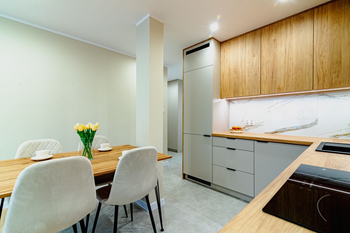 - Nowe meble na wymiar od stolarza (kuchnia, przedpokój, szafka z umywalką w łazience)