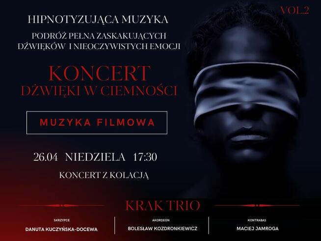 KONCERT W CIEMNOŚCI - MUZYKA FILOWA Zapraszamy na niezwykły koncert, który przeniesie Was w świat hipnotyzującej muzyki ...