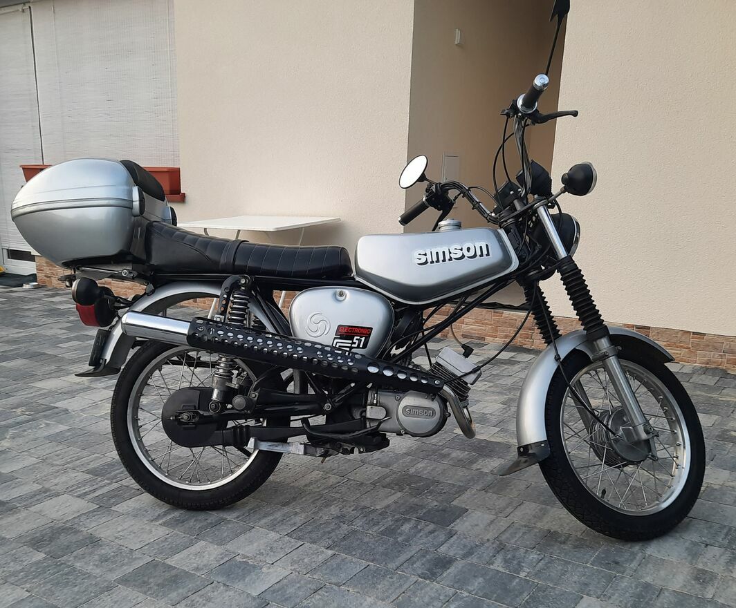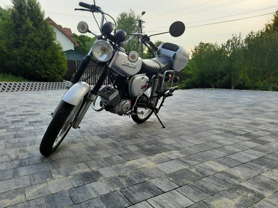 Sprzedam Pięknego Simsona , którego kupiłem 25lat temu i mam do dziś służył mi do krótkich przejażdżek latem, dając prawdziwą przyjemność. Cały czas przebywa w ogrzewanym garażu i dbam o niego jak tylko można. Silnik zmieniłem po zakupie na oryginalną 70kę i gaźnik bing, nigdy nic się w nim nie zepsuło i nie zawiodło. Zapala od kopa i służy, cichy i mało pali.Silnik pracuje na oleju syntetycznym, co nie generuje żadnego nagaru i doskonale smaruje silnik.