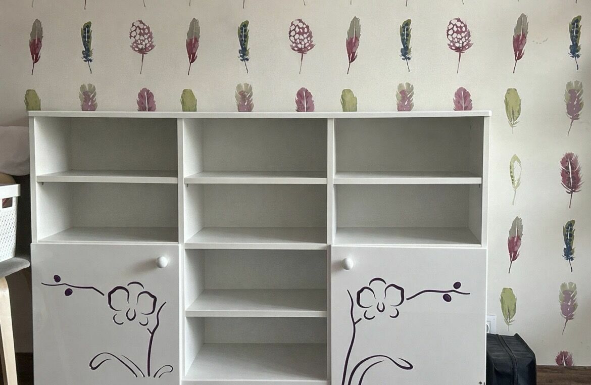 Sprzedam białą komodę z elementami orchidei. Komoda zadbana w bardzo dobrym stanie. Odbiór osobistyAnia