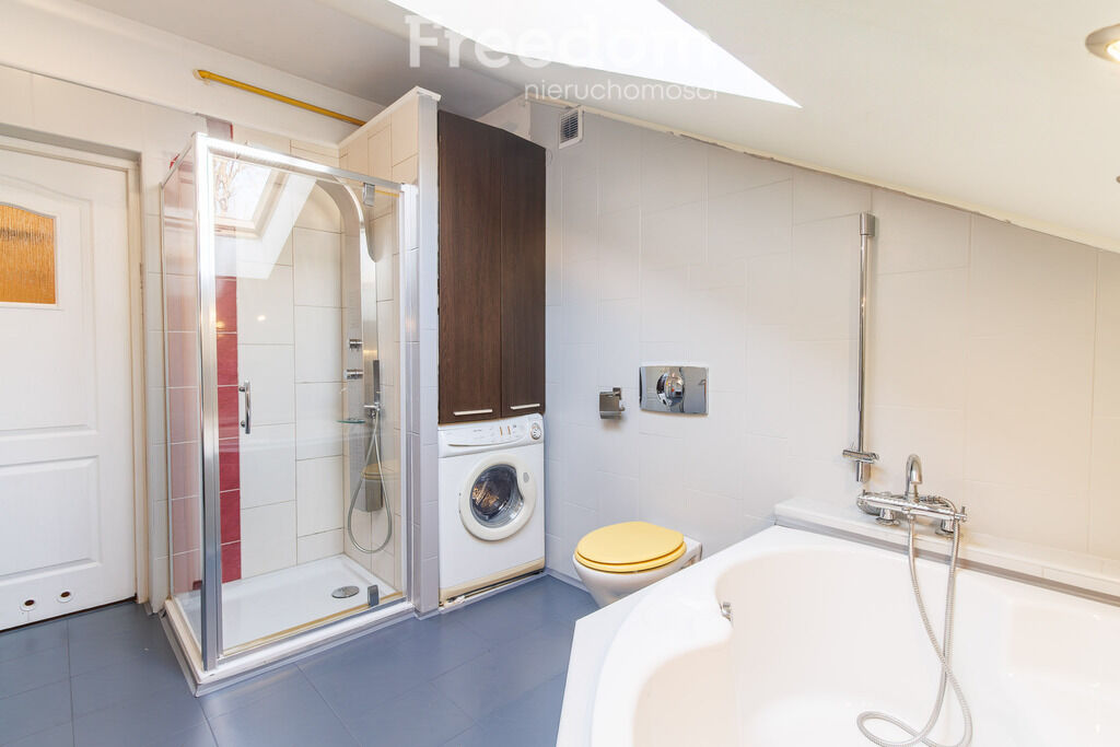 zarówno wannę do długich kąpieli, jak i wygodny prysznic, pralkę