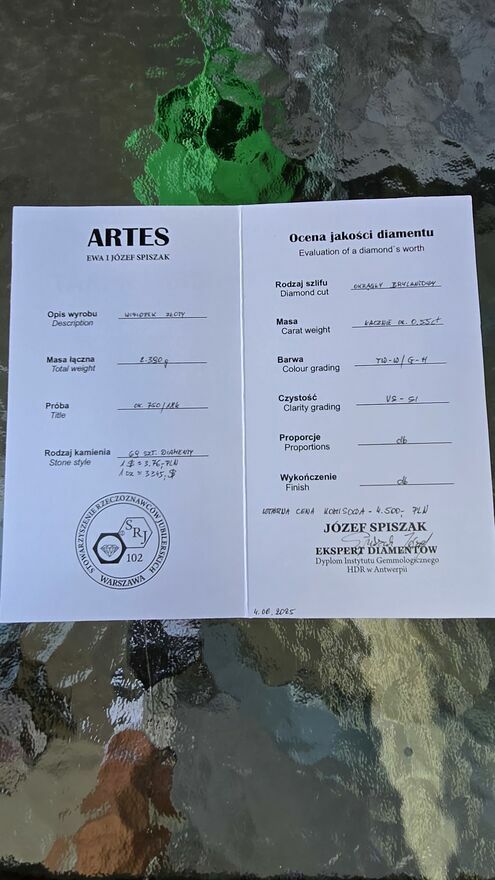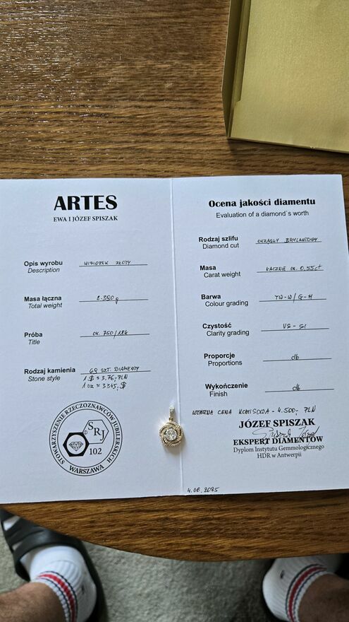 Witam posiadam na sprzedaż zawieszkę z diamentami bardzo ładnie się prezentuje w tym zloto 18karat, posiadam certyfikat zapraszam do kontaktu.Piotr